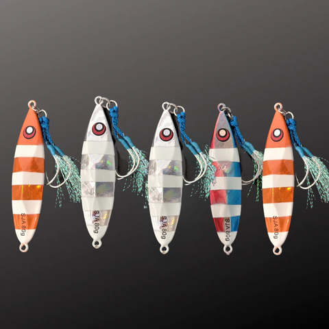 5 Pack of SJA Flat Fall jigs - 5 colours. 40g-250g.